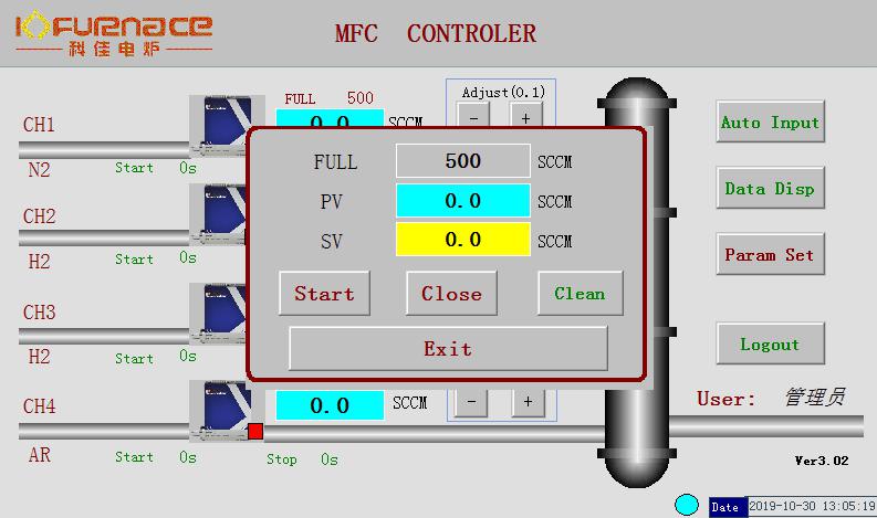 | Mass Flow Meters (LCD Touch Screen) | Six precision mass flow meters : MFC Accuracy is: ±1.5% F.S. MFC 1 for Ar : Gas flow range depends on customer’s requirement MFC 2 for N2 : Gas flow range depends on customer’s requirement MFC 3 for O2 : Gas flow range depends on customer’s requirement MFC 4 for C2H2: Gas flow range depends on customer’s requirement MFC 5 for CH4: Gas flow range depends on customer’s requirement MFC 6 for H2: Gas flow range depends on customer’s requirement (above flow range is only for reference, Pls confirm gas flow range before palce order. ) One gas mixing tank is installed on bottom case with 6 stainless steel needle valves is installed on left side of bottom case to control 6 type gases mixing manually. LCD Touch Screen (designed by kejia, with Kejia Logo) for MFC is as below: ![]() ![]() |