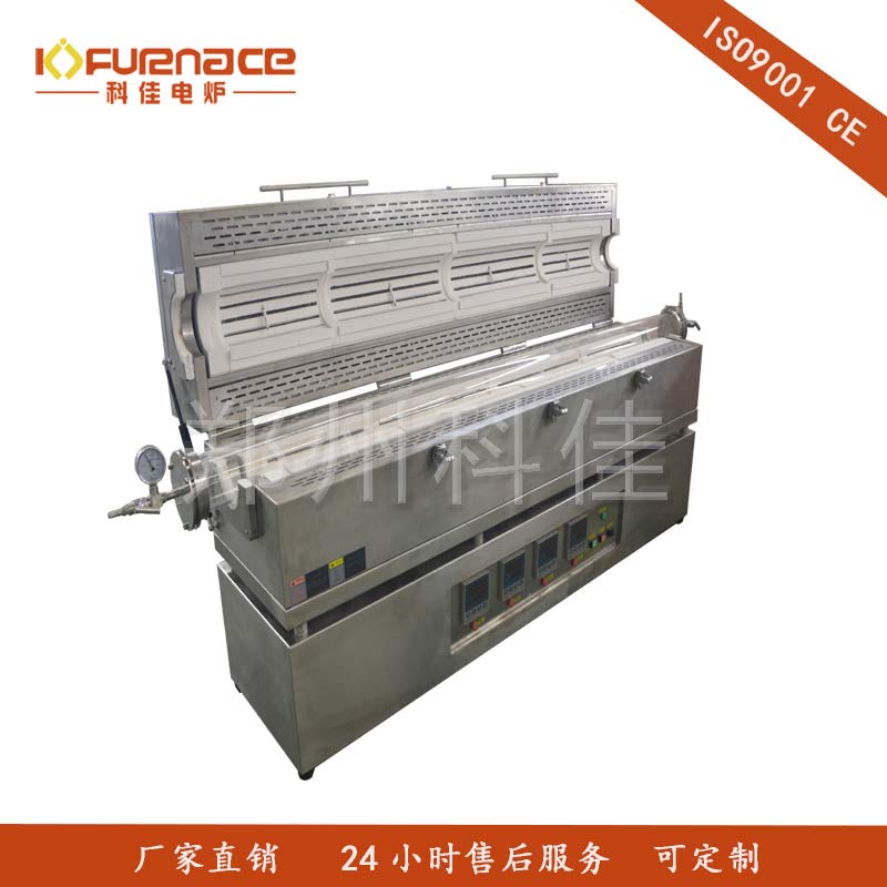 This KJ-T1200-IV Four Zone Stainless steel tube furnace is mainly used for sintering, coating, Nanotube study, soldering, annealing, melting, analyzing of metal and non-metal materials in both vacuum condition and atmosphere condition in laboratories and enterprises.